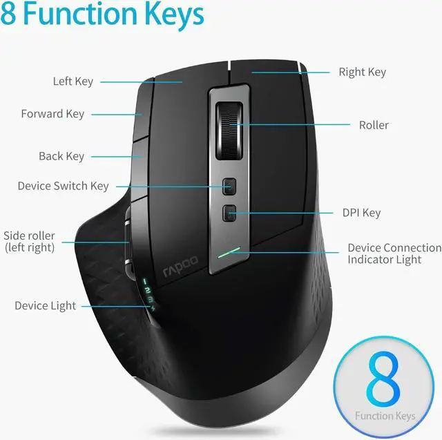 [(Multifunctional wireless mouse)] 8 custom button mouse, 4 DPI (600/1200/1600/3200), meet different precision requirements, laser engine mouse with PTFE foot pad, easy to use, suitable for various surfaces , no mouse pad required.