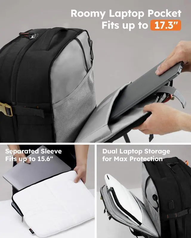 [(Dual Laptop Protection & Smart Storage)] Travel smarter with dedicated laptop storage! This laptop backpack features a padded 17" laptop compartment plus a additional sleeve for 15.6" laptops, keeping your devices safe from shocks. Multiple po
