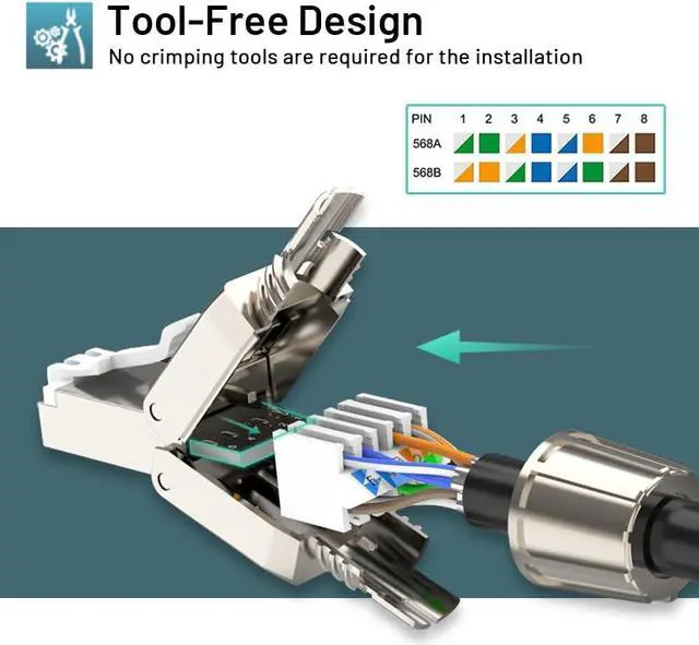 Durable Full Metal Construction: Built with a rugged full metal jacket, this RJ45 field terminable plug is perfect for Cat7 cable assemblies, wireless access points, and connections to net