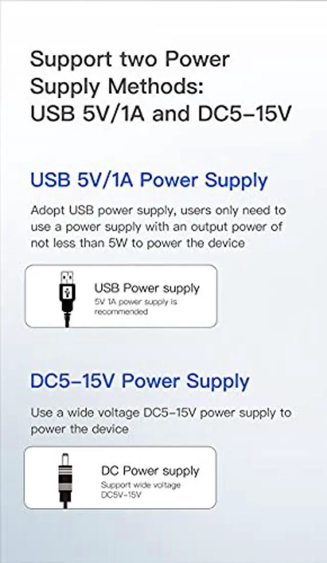 2. Support power input over-voltage protection function (automatic power-off when the power supply voltage exceeds 15.5V )