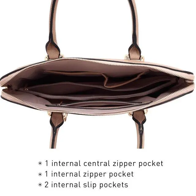 ^^ POCKETS: 1 center divider with zipper closure, 1 internal zipper pocket, 2 internal slip pockets, 1 external back zipper pocket. Multi pockets to keep your daily essential well orgnized.