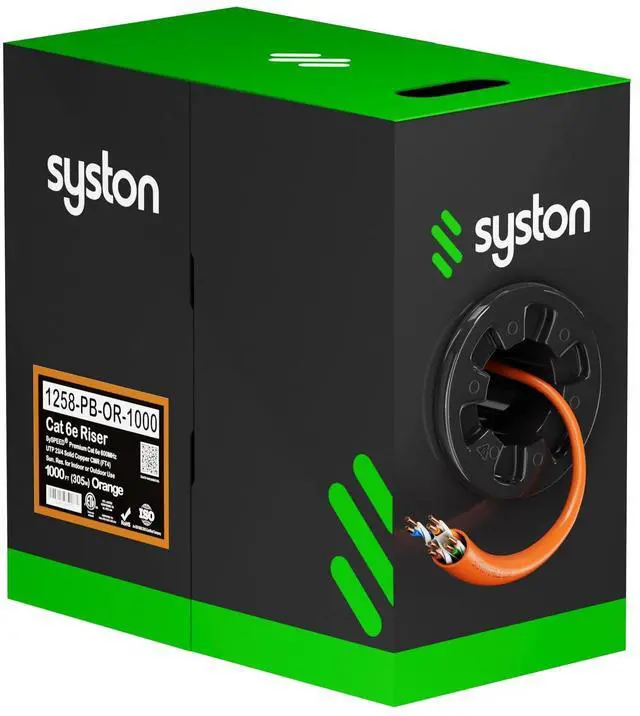 Syston Cable Technology Cat6e Ethernet Internet Cable - 1000 FT600MHz 23AWG Solid Bare Copper Wire Outdoor/Indoor Suit, No Ends 10 Ft to 1000 Ft Available, Heat Resistant Riser Rated - CMR