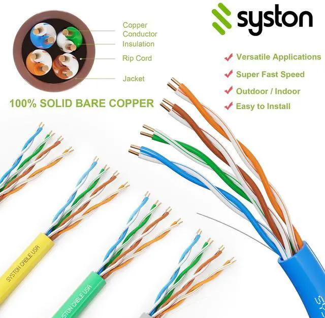 ^^ No RJ45 connectors are on this cable. 1 ft more if you order our customized length cable. Packaging may vary. All Syston cables are Industry Standard Compliant with ANSI/ TIA 568.2 -D, NEC/CEC Type CMR (UL 1666) for Riser, UL and/or ETL listed, and RoHS Compliant and more depending on the type of cables being purchased.