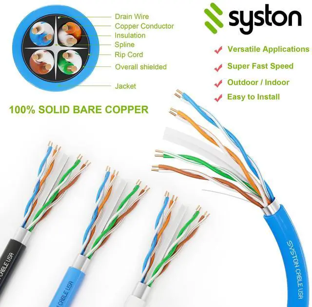 ^^ Pure Copper Conductor: 23 AWG solid pure bare annealed copper for the strongest signal you can achieve in networking pure copper provides better conductivity and enhanced flexibility with an internal Spline to eliminate cross-talk providing exceptional transmission and performance with lowest possible signal loss.