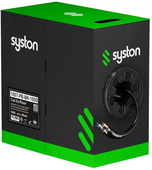 350 MHz Speed High-Data transfer for networking peripherals and applications that utilize RJ45 connectors including routers, switches, online gaming, video surveillance and streaming, IP Cameras, POE Power over Ethernet, HDMI or HD Base-T extenders, Computers, Laptops, PlayStation, Xbox, and any connection with an RJ45 connector looking to connect to the internet. ^^ The Premium SySPEED Series Cat 5e 350MHz Riser Indoor/Outdoor Sunlight resistant and In-wall CMR rated cable offers true digital performance while meeting the high standards in fire resistance. Cat 5e 350MHz Riser CMR rated Bulk High-Performance cable.