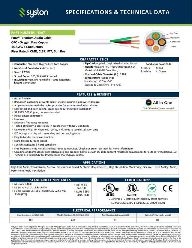 • CMR Fire-Resistant Rating - With a CMR fire-resistant rating, this cable offers high protection against fire hazards. It's built to be safe and reliable, ensuring both durability and safety for your home or professional audio setup.