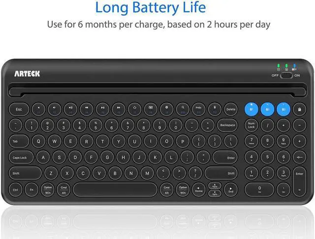 3 Devices Switch with A Single Clicking: This keyboard is able to connect to 3 devices at the same time. You can switch between 3 devices with a single key clicking.