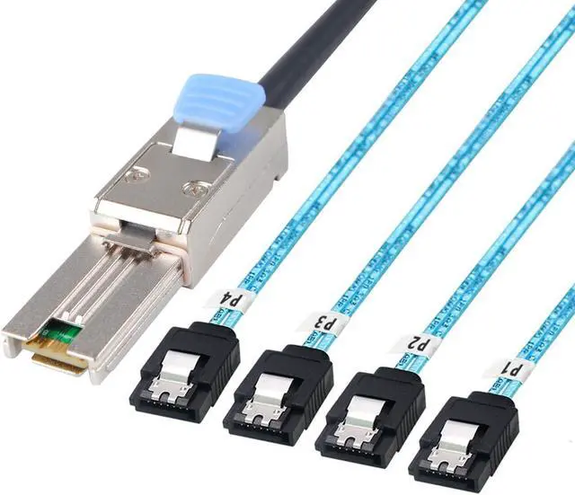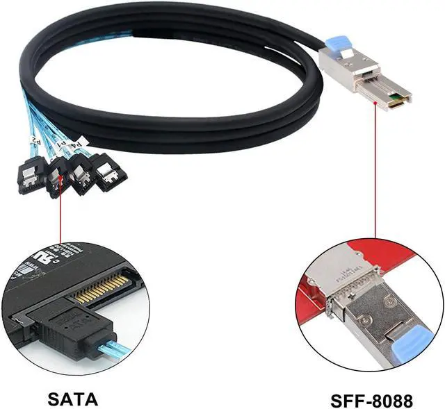 Mini SAS guarantees performance at 3.0 Gigabits per second. This SAS cable features Mini SAS type SFF-8088 connectors and Internal SATA connectors. This cable connects a to SFF-8088 Mini SAS Controller directly to 4 SATA drives.