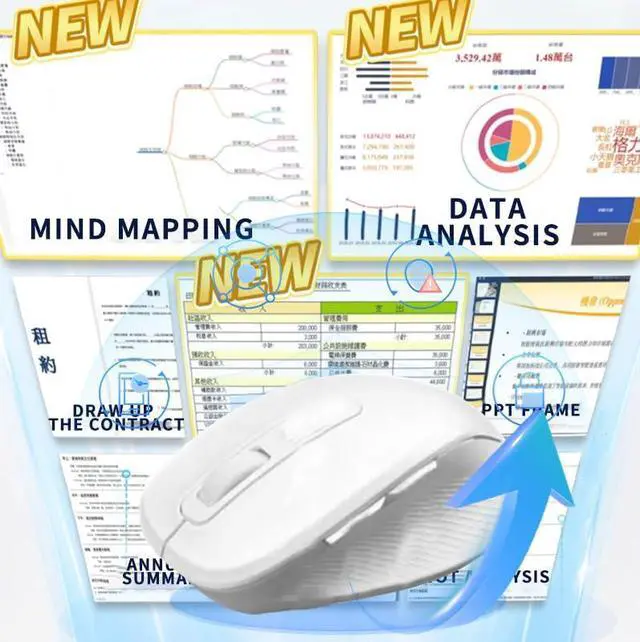 JOMAA Wireless + Bluetooth AI Mouse Smart Voice Mouse Support Stroke Translation Voice Input Conversion to Improve Work Efficiency, Applicable to Win, Mac (White)