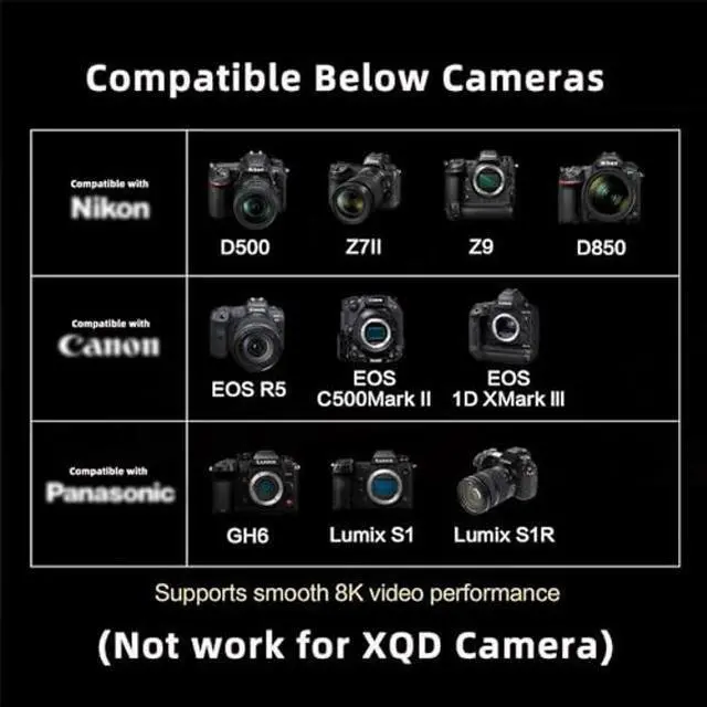 Designed for next-gen video/photo cameras such as DSLR, cinema, and mirrorless cameras,Enables smooth, RAW 4K/8K video support. Captures flawless RAW videos and photos in breathtaking 8K Ultra HD resolution.