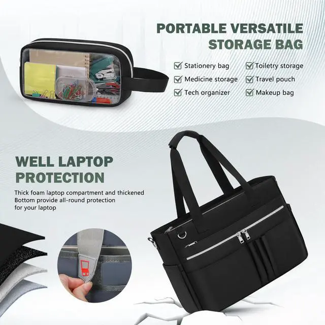 Equipped with a Clutch Bag & Insulated Pocket Design: Unlike ordinary teacher bag, our teacher bag includes a transparent clutch bag with a handle--perfect for organizing stationery supplies.It is also suitable for use as a cosmetic bag, toiletry bag, or electronics organizer.The dual thermal pockets of teacher tote maintain food/drink temperatures for hours, perfect for busy teachers juggling classes or all-day meetings.This nurse bag is ideal for busy professionals needing organiz