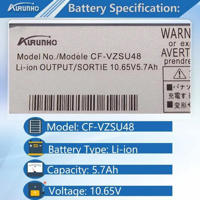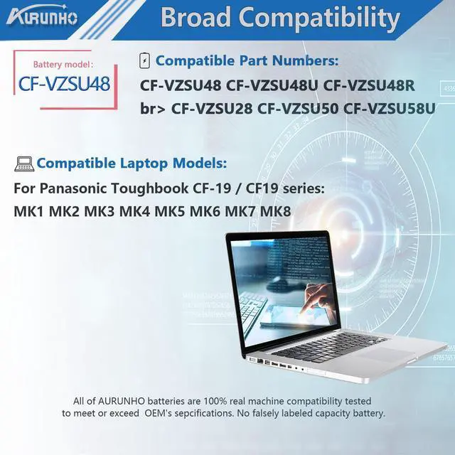 AURUNHO CF-VZSU48 Laptop Battery Replacement for Panasonic Toughbook CF-19 CF19 MK1 MK2 MK3 MK4 MK5 MK6 MK7 MK8 Series CF-VZSU48U CF-VZSU28 CF-VZSU48R CF-VZSU50 CF-VZSU58U 10.65V 5.7A h