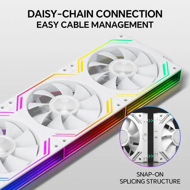 Daisy Chain PC Fans: Signal and power are transmitted via PIN-to-PIN connectors, requiring only one cable per fan group, providing greater flexibility, easier installation (fans are designed for snap-together assembly, with no magnetic suction, see Figure 2 for detailed installation) ^^
