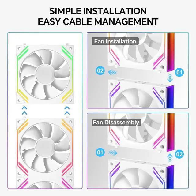 Operation: 8 pieces of rubber shock pads can effectively reduce noise and vibration, noise 32dB (A) ^^ Surrounding Infinity Mirror ARGB Lighting Effect: Side Infinity Mirror Lighting Effect and Front ARGB Lighting, presenting a 3D visual sense, making your pc case more splendid ^^ Hydro Bearing solve the problem of pc cooling fan blade shaking in lifting mode, keeping fan noise to a minimum while providing maximum cooling performance