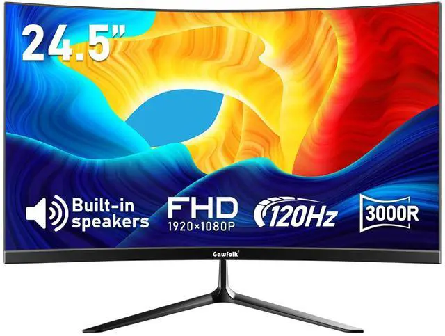 Gawfolk 24.5 Inch Gaming Curved Monitor Built-in Speakers, 3000R 120Hz PC Screen Full HD 1080P, HDMI 2.0, VGA, Wall Mount Compatible 75 * 75mm