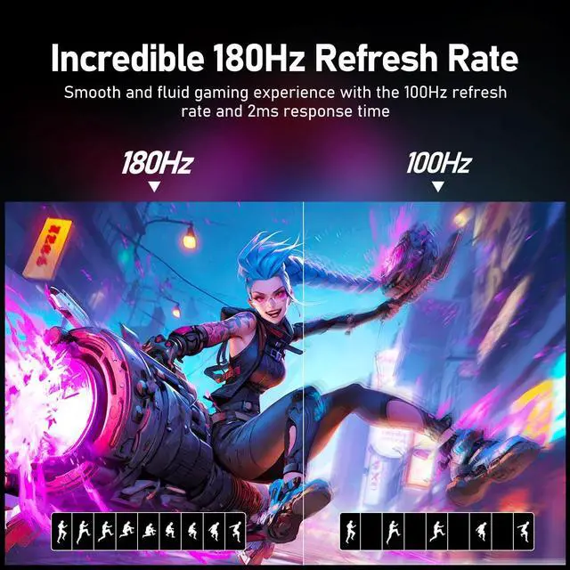 MONITOR: This Gaming Monitor adopts a trendy 1800R VA screen design, ultrafast 180Hz refresh rate, QHD ( 2560 x 1440 ) resolution display, 1ms response time delivers clear pictures, smooth videos, fastest moving scenes, enhancing your usage experience in any demanding moment.