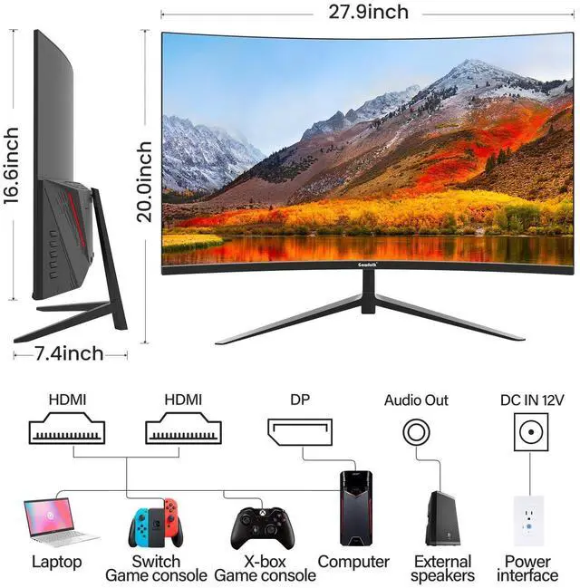^^ Flexible Connectivity: Gawfolk 32 inch monitor provides HDMI( 2.0 )*1, DisplayPort( 1.2 )*1and audio out*1 interfaces, offering connections to Xbox, PC, laptops, and more. Experience high-quality image transmission, allowing you to seamlessly transition between work and entertainment. wall mounting compatible (100mm*100mm) ^^