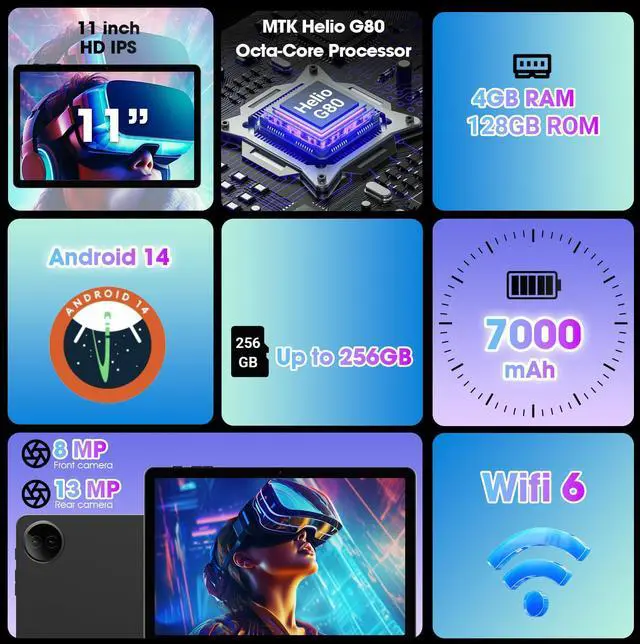 High-Speed Octa-Core Tablet with Premium Metal Design:Featuring the MediaTek Helio G80 Octa-Core Processor (2x A75 2.0GHz + 6x A55 1.8GHz), this gray metal tablet delivers seamless multitasking and gaming performance comparable to Snapdragon 710, ensuring smooth Android 14 operation