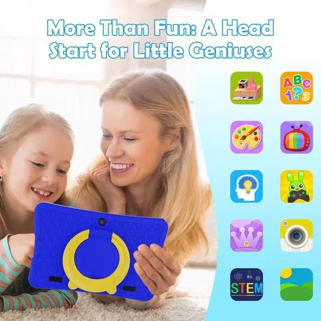 4GB +32GB Performance Kids TabletTablet adopt 4GB (2GB+2GB) RAM, 32GB ROM, Android 12 system. Large capacity RAM and new System, ensures the fast speed when open apps and multi task. 1024*600 IPS display, Wifi, Bluetooth, front 2.0+ back 5.0MP HD Camera. Dual Speaker, 3.5mm headphone jack. Pre installed kids apps, Specially designed for different age kids. Different color for choice.