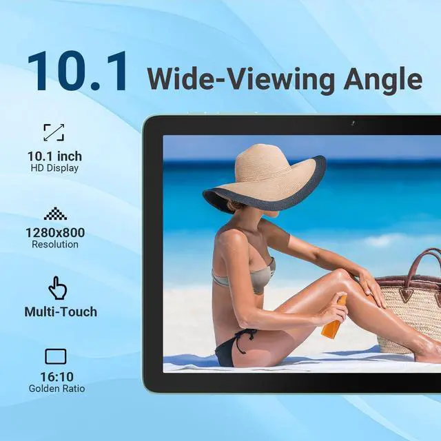 Flagship Octa-Core Powerhouse for Ultimate PerformanceFueled by the MediaTek Helio G80 octa-core processor (2x high-performance Cortex-A75 cores at 2.0GH z + 6x energy-efficient Cortex-A55 cores at 1.8GH z), this tablet redefines speed and efficiency. The advanced 8-core architecture intelligently balances power-hungry tasks like gaming or video editing across the A75 cores while reserving lighter workloads (web browsing, streaming) for the A55 cores. This ensures smooth multitasking, faster app launches, and console-grade gaming with reduced heat and battery drain. ^^ Cinematic 10.1" IPS Display with Precision ClarityImmerse yourself in stunning detail on the 10.1 -inch IPS screen featuring an 800x1280 resolution and G+G (Glass + Glass) toughened protection.