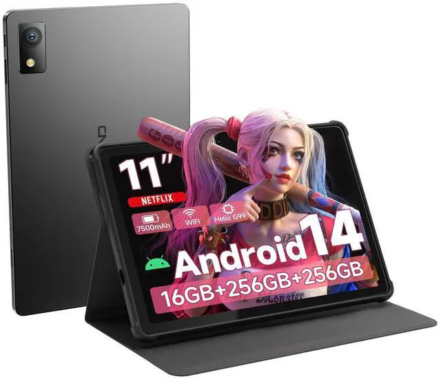Flagship performance experiencePowered by the advanced MTK Helio G99 Octa-Core processor and massive 16GB RAM (8GB+8GB extended), this Android 14 tablet delivers desktop-level performance. Enjoy buttery-smooth gaming, 4K video playback, and effortless multitasking. The 256GB internal storage provides ample space for all your apps and media. ^^ Immersive audio and video enjoymentFeast your eyes on the stunning 11" FHD In-cell display with 350cd/m brightness and 16:10 cinematic ratio. Dual speakers deliver rich, immersive sound for movies and games. The ultra-thin body makes it perfect for binge-watching anywhere. ^^ The King of All-Weather Battery LifeNever worry about battery life with the massive 7500mAh capacity providing up to 12 hours of continuous use.