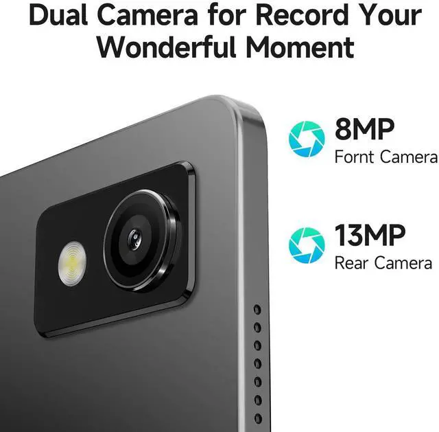 Perfect for long flights, workdays, or gaming sessions. The USB-C port supports fast charging to get you back to 100% quickly. ^^ Professional Photography ExperienceCapture life's moments in stunning detail with the 13MP rear camera and take crystal-clear video calls with the 8MP front camera. Perfect for content creators, remote workers, and social media enthusiasts. ^^ Intelligent Life All-around AssistantEnjoy smart features like split-screen multitasking, OTG support, and Bluetooth 5.0 connectivity. The lightweight design (only 490g! ) makes it ideal for work, travel, and entertainment.