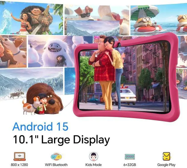 Powerful Processor for Smooth PerformanceEquipped with a Cortex-A73 processor combined with a single-core ARM Cortex-A73 and quad-core ARM Cortex-A53, up to 1.75 GHz, this tablet ensures fast and smooth multitasking and entertainment experiences. ^^ Vibrant 10.1 -inch DisplayFeaturing a 10.1 -inch 800x1280 IPS P+G screen with a brightness of 270cd/m and a contrast ratio of 800, it delivers crisp and vibrant visuals perfect for watching videos, playing games, and reading. ^^ Extensive Storage and Expandable MemoryWith 6GB of RAM (3 + 3GB) and 32GB of ROM, this tablet offers ample storage for apps, games, videos, and more, ensuring that kids have everything they need for endless fun and learning.