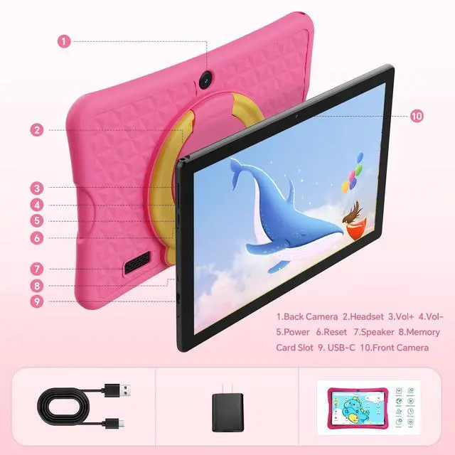 ^^ Advanced Connectivity OptionsSupporting WiFi ( 2.4GH z + 5GHz), BT 5.0, and USB OTG, this tablet ensures seamless internet access, file sharing, and device connectivity, making it perfect for online learning and entertainment. ^^ Long Battery Life and Child-Friendly DesignBoasting a 6.5 -hour battery life with a 6000mAh capacity, this tablet ensures extended use without frequent recharging. Made of durable plastic and featuring a cartoon silicone case, dual cameras, and dual speakers, it's designed for safe and enjoyable use by kids. ^^ The best gift and warranty policyIt is the best Christmas gift, Valentine's Day gift, and the best birthday gift for your son or daughter.