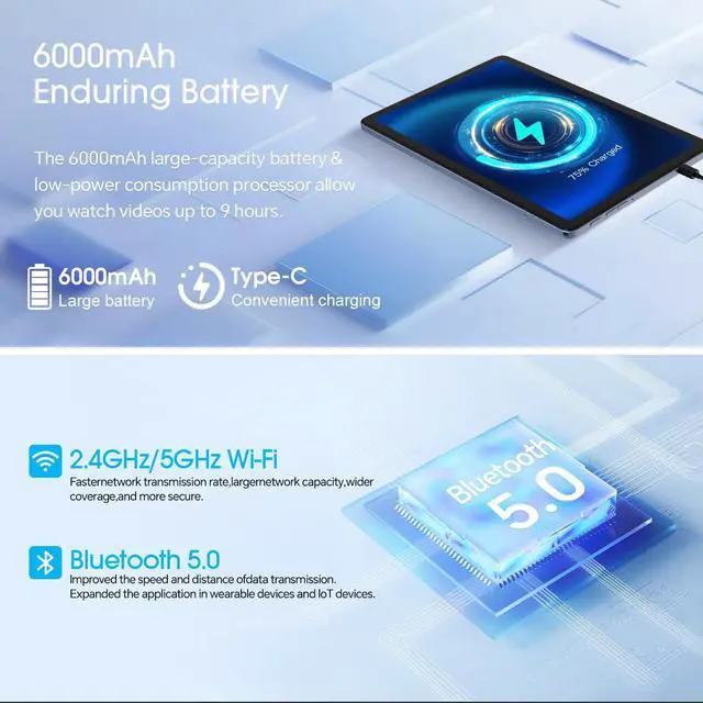 Octa-Core Processor: The DigiLand Android tablet is equipped with the MediaTek Helio G80 octa-core processor and pre-installed with Android 14. It features dual-band Wi-Fi ( 2.4G /5G), Bluetooth 5.0, and Type-C connectivity. With strong performance, it easily handles a variety of tasks. Whether for efficient office work, online learning, or immersive entertainment, it provides a smooth and stable experience. Offering excellent value for money, its the ideal choice balancing performance and budget. The best Christmas gift for family ^^ 10 (4+6