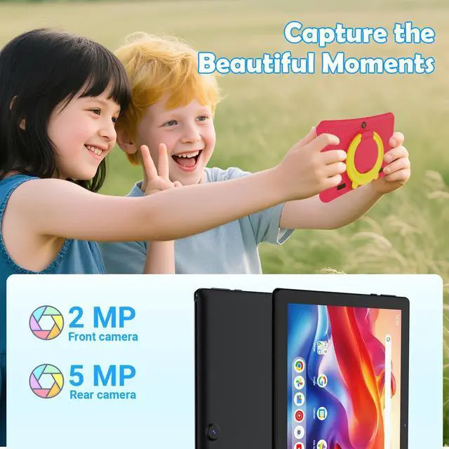 Android 15 kids Tablet This Kids tablet android is equipped with Android 15. Powerful quad-core processor. Run smoother when open apps and loading the pages. 32GB ROM and Supports Micro SD card expand up to 256GB. so that you can storage more photos and videos. This Android Kids Tablet with GMS Certified, you have full access to the latest Google Service such as Gmail, YouTube and many more apps and contents. This tablet support widevine L1, Netflix. ^^ Free Gift Kid-proof Silicone CaseThe slim and compact body makes it easy for even younger children to take it with its own protective holster for durability, parents would not worry about the drops by accident, And the adjustable plastic stand which frees the hand of holding the tablets.