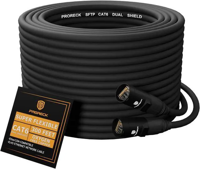 PRORECK SFTP CAT6 Dual Shielded Ethernet Cable With EtherCON RJ45 Connectors, 300ft, High-Speed, Ideal for Pro Sound Systems, Studio, and Live Performances (PR-C6B-300)