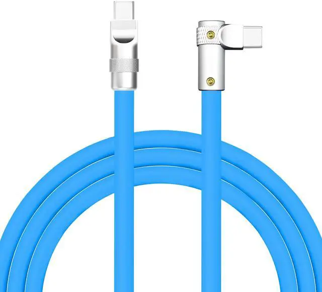 chubbycable FlexElbow Pro - 90 Degree Design 240W Fast Charge Cable Ultra-Thick Silicone Right Angle USB C Cable Phone Tablets Charging Cord, Blue, Type-C to Type-C, 8.5FT
