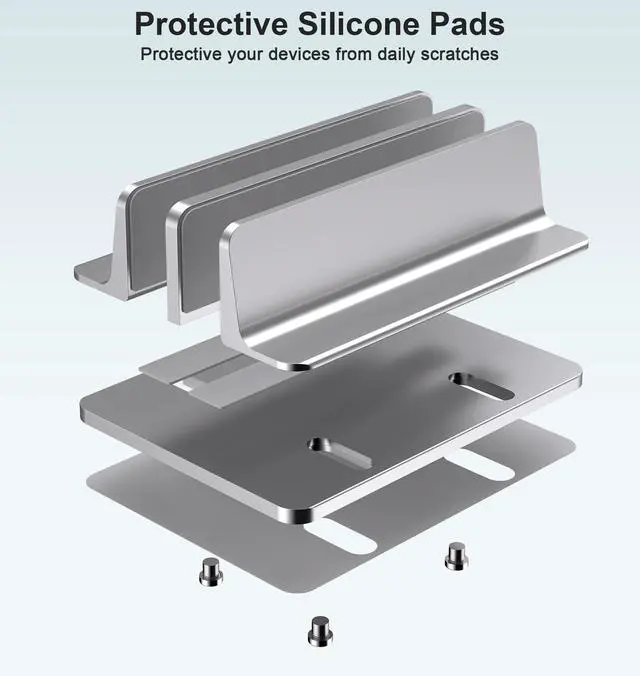 Protective Mat: Non-toxic and non-slip silicone mats cover the laptop slots to avoid scratches on your devices; non-slip silicone pads pads on the base ensure stability and security