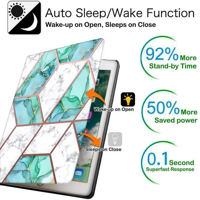 DuraSafe Cases for iPad 9.7 Inch 5 6 Air 1 2 [iPad 5th 6th Air 1st 2nd ] A1893 A1954 A1822 A1823 A1566 A1567 A1474 A1475 A1476 Printed Folio Magnetic Smart Protective Cover - Marble Green