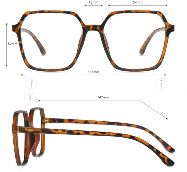 PRODUCT DIMENSIONS - Large Glasses: Weight: 10g, Frame Width: 54mm(2.13in), Frame Height: 50mm(1.97in), Temple Length: 147mm(5.79in), Nose Bridge: 18mm(0.71in)