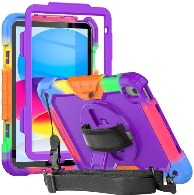Built-in 360 Rotatable Kickstand and Hand Strap : 360-degree rotating swivel stand supports position of 3 angles(Vertical, Horizontal, and Halfway between), ideal for watching videos, conferences and travelling. Soft rotating handle strap prevents falling of iPad Generation 10th tablet, featuring convenient use for teachers, students, waiters, doctors, nurses and conference presenters.