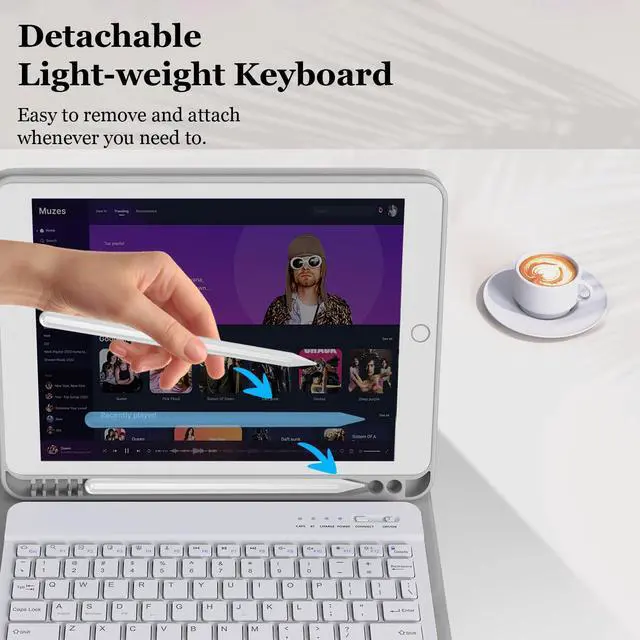 MMK for iPad Keyboard Case for 10.2" 9th/8th/7th Generation 2021/2020/2019, Detachable Wireless BT Keyboard with Magnetic Protective Cover with Pencil Holder for iPad Pro 10.5" 2019