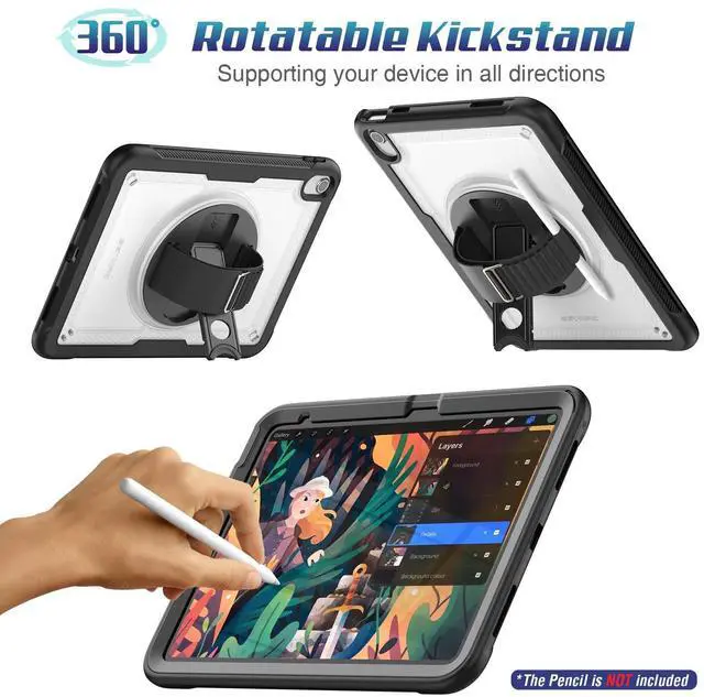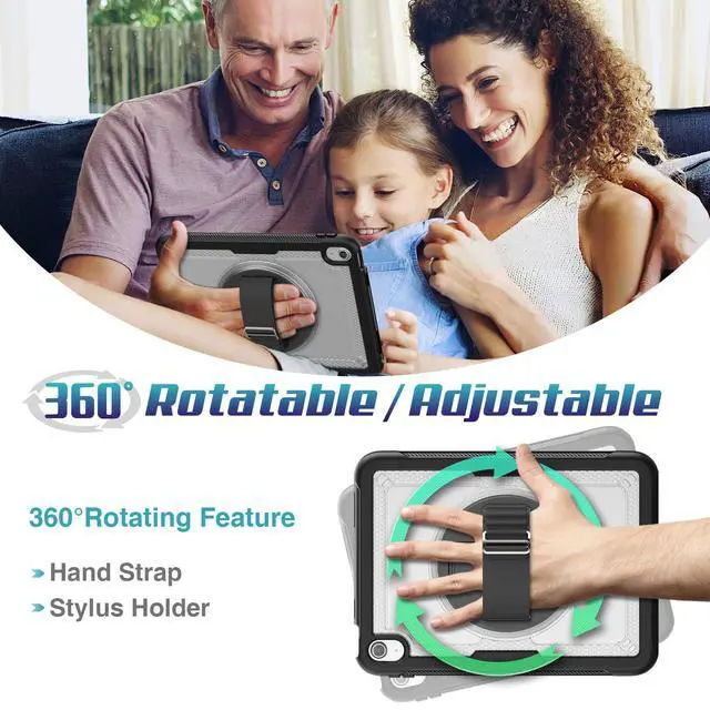 Adjustable Hand & Shoulder Strap / 360deg Rotatable Stand: Hold device safely, comfortably with soft hand strap. Adjustable,Detachable shoulder strap for a wide-range of users, easier and comfortable to carry; With 360deg rotating adjustable kickstand stable at multi-angles, case for iPad 11 inch A16/ for iPad 10th generation for viewing, typing or watching