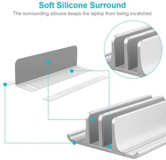 Protective and Stable: Anodized aluminum is scratch-resistant and durable. Non-toxic silicon inside the slot protects your MacBook from being scratched and secures it in stable position.Non-slip base with silicone pad prevents your vertical