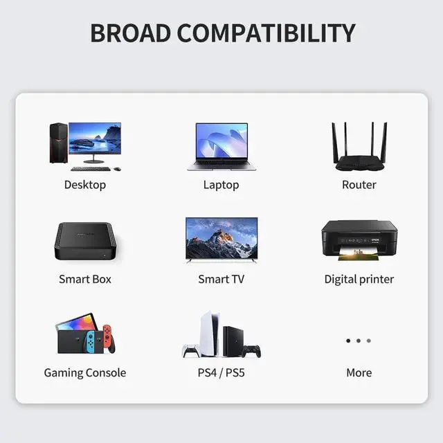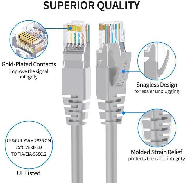 Cat 6 Performance: TIA/EIA-568C.2 compliant and UL listed, conductors are applied 24 AWG stranded copper wire provides up to Cat6 10-Gigabit Ethernet, backward compatible with 10Base-T, 100base-tx(fast Ethernet) and 1000Base-T (Gigabit Ethernet) for 8P8C cat5e and Cat5 cable.
