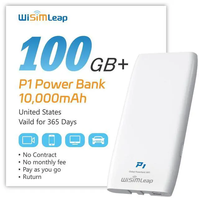 Mobile Hotspot Device with Power Charger for Global Travel 4G Router with 10000mAh Charging Battery No Roaming fee Built-in SIM Card Travel Portable WiFi Hotspot Power Bank Mobile WiFi 100GB for USA