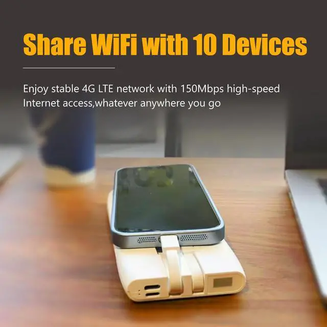 [(Product Performance)] With a 4G LTE Cat4 module and WiFi 6, this global version works in 150+ countries. It connect to 10 devices by same time and features a 10,000mAh battery with 22.5W super-fast charging and 20W PD fast charging. Airplane-friendly, it even comes with a built-in Lightning and Type-C bidirectional fast-charging cable--no need to pack your own!
