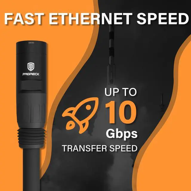 EtherCON RJ45 Connectors: PRORECK CAT6 Cable features locking EtherCON RJ45 connectors, ensuring 100% compatibility with all EtherCON inputs and outputs. This cable securely attaches to your devices, This makes it a reliable choice for studio recordings, live sound setups, and other demanding audio applications.