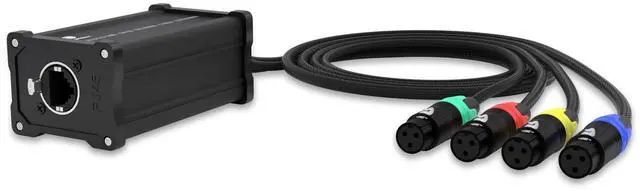 Professional 4-Channel Design The Proreck snake cable features 4 separate 3-pin XLR channels, ensuring reliable transmission of audio and DMX signals over a single Ethercon RJ45 Cat6 cable. Perfect for stage, studio, and live performance setups.