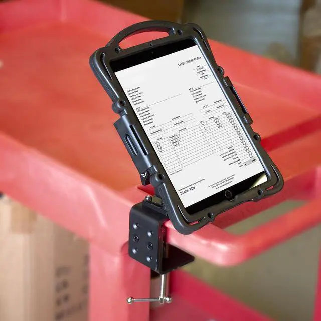 An Desk Mount for iPad, Tablets & Samsung Galaxy Z Fold securely attaches your device to various surfaces like desks, carts, or wheelchairs, offering flexibility and stability. It offers a hands-free viewing experience with multiple angle adjustments for comfort.