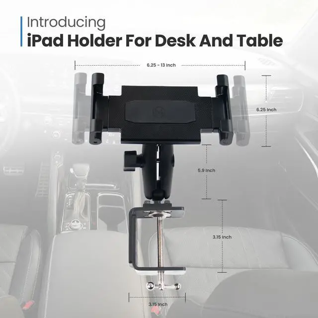 Mighty Mount Heavy Duty Desk and Table Mount, A Stable 360deg Adjustable Stand for iPads, Tablets, and Samsung Galaxy Z Fold Devices, Universal Compatibility, Fits Devices ranging from 6.25" to 13"