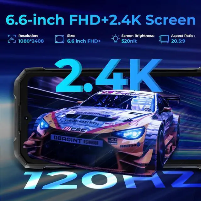 Unstoppable PerformanceThe HOTWAV Hyper 7 Pro Rugged phone is a true performance beast, engineered to dominate! With its MediaTek Dimensity 7050 flagship processor, 16GB real RAM + 20GB virtual RAM (36GB total), and 256GB internal storage (expandable up to 2TB with a microSD card), this rugged smartphone delivers blazing-fast speeds for gaming, streaming, and heavy multitasking. No more lagjust pure, unstoppable power! ^^ Immersive 2K Super DisplayExperience visuals like never before on this rugged phones 6.6 -inch 2K ultra-HD display with 10802408 resolution and buttery-smooth 120Hz refresh rate. Whether you're watching movies, playing games, or browsing outdoors, the HOTWAV Hyper 7 Pro waterproof phone ensures vibrant colors, sharp clarity, and ultra-responsive toucheven in bright sunlight! ^^ Mega Battery & Lightning ChargingSay goodbye to battery anxiety! The HOTWAV Hyper 7 Pro rugged phone packs a massive 10800mAh batteryenough to last days on a single charge.