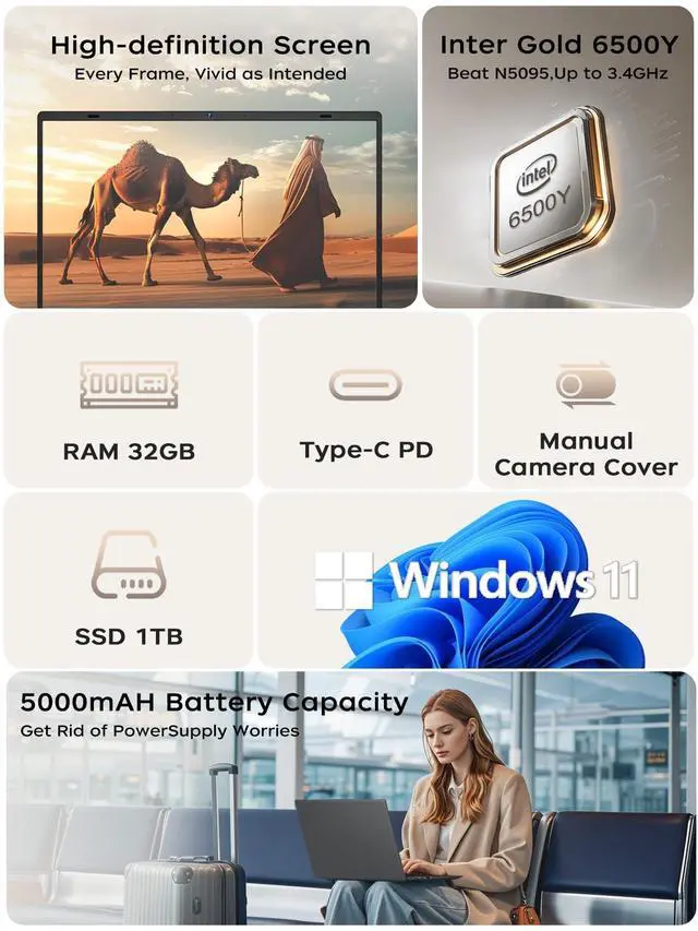 ^^ FAST SPEED & STORAGE - This Traditional Laptop Features 32GB RAM, allowing you to easily manage massive amounts of data while running multiple programs and ensuring efficient system operation. Our Laptop also includes a built-in 1TB M. 2 2280 SATA High-Speed SSD with NVMe Protocol Support and PCIE 3.0 Lanes, delivering blazing sequential read and write speeds. It boots effortlessly, giving you the most enjoyable user experience. ^^ VERSATILE CONNECTIVITY - This Laptop Features USB-C Full-Function Jack, 2x USB 3.2 Jack, 1x USB 2.0 Jack, 1x HD-MI Jack, 1x TF card slot, 1x Headphone Jake, 1x Type-C Charging Jack.