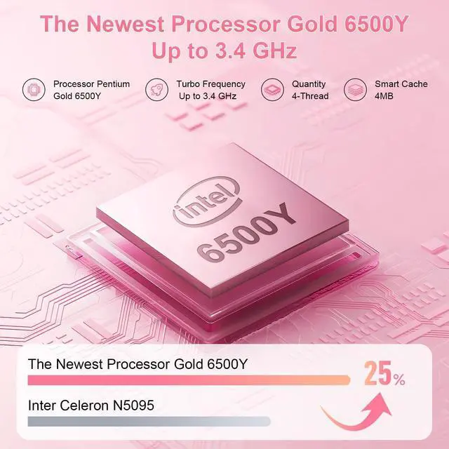 CPU: Pentium Gold 6500Y, 2-Core, 4-Threaded, Max RWI 3.4GH z, 4 MB L3 Cache,