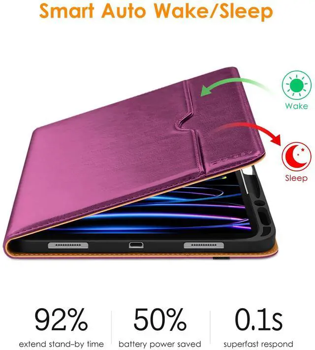 DTTO for iPad Pro 12.9 6th / 5th / 4th / 3rd Generation Case 2022/2021/2020/2018,Premium Leather Folio Stand Cover with Built-in Pencil Holder -Auto Wake/Sleep and Multi Viewing Angles,Purple